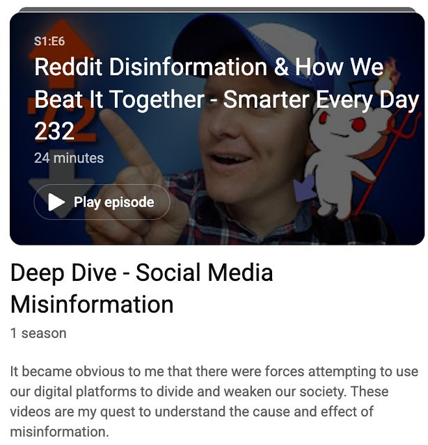They are a few years old now (from 2019-2020) but YouTuber Destin Sandlin (@SmarterEveryDay) created a fantastic series of videos he put into a YouTube playlist, “Deep Dive – Social Media Misinformation.”